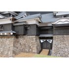 ■漆喰壁と柿渋塗りの黒い下見板張りが特徴で、天守台から迫り出した部分に設置された石落しや、小天守の「忍び返し」といわれる鉄串、緩やかな勾配から上部に向かって垂直となる「武者返し」「三日月石垣」と呼ばれる高石垣など、清正が建造した鉄壁の要塞の特徴が随所に見られます。