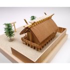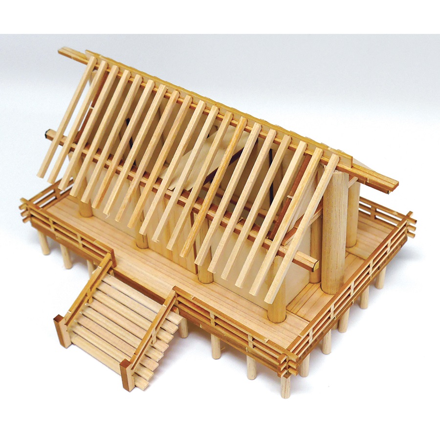 柱等は直線的に組み、大棟の上には10本の鰹木 (かつおぎ) を並べ、両端に千木 (ちぎ) を配し、付属の樹木を配置すれば神聖的な雰囲気の漂うモデルに仕上がります。