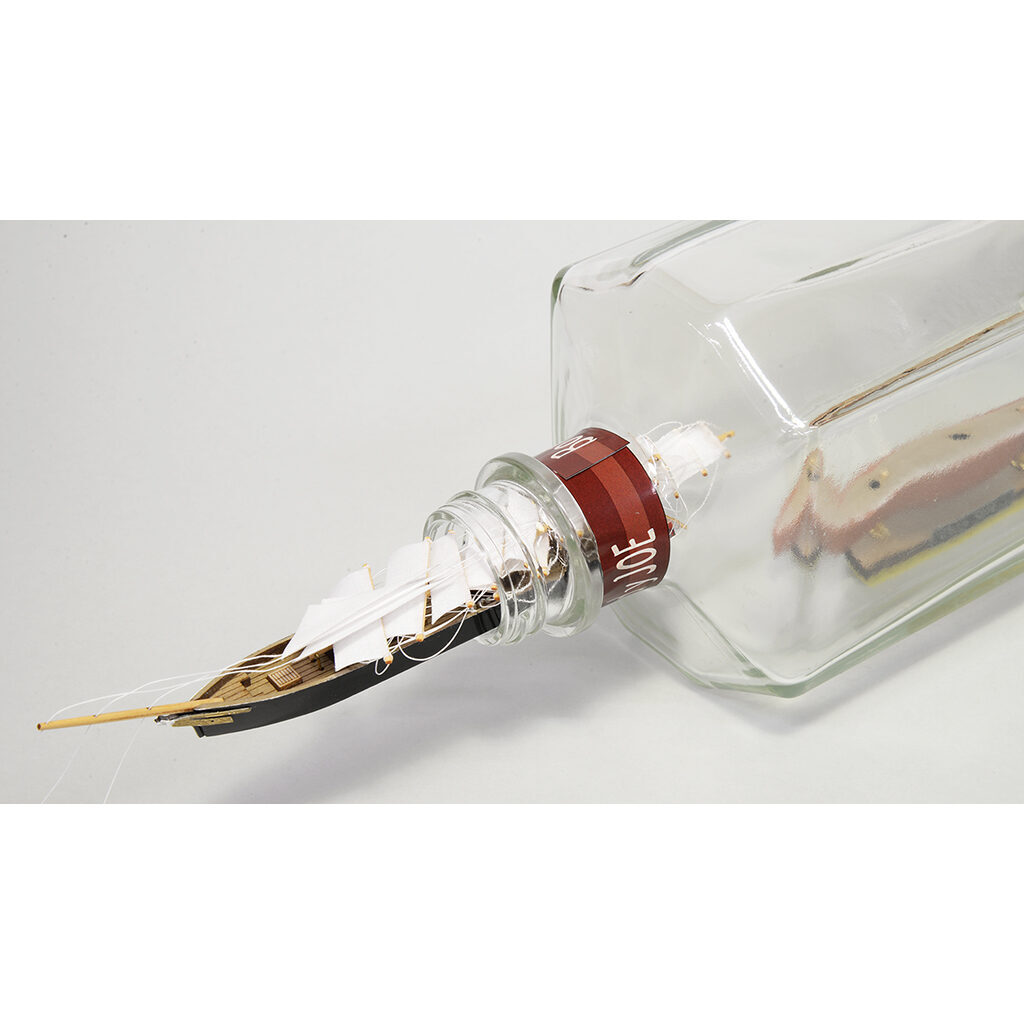 ■ウッディジョーのボトルシップは船体を適切に分割し、難しいとされるロープ張りを極力ボトルの外で行い、マスト・ヤードは折りたたんでから挿入する方式を採用。模型製作のベテランでも困難とされるボトルシップを誰でも手軽に楽しんで頂けるようにしました。